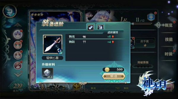在角色栏里我们还可以看到角色的装备。初始装备都比较弱,但是玩家可以通过强化装备来提升角色的实力。这个也比较简单,只要用强化材料和金币就可以锻造装备了。不同品阶的强化结晶获取的途径不一样。高品阶的强化结晶可以锻造高星级的装备。