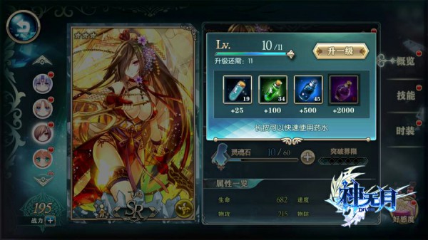 《神无月》的角色设定除了等级还有星级”,星级越高的角色其基础属性越好,战力也越强。所以我们还需要收集灵魂石来为角色升级。点击灵魂石旁边的加号,可以查看该角色灵魂石的获得途径。全部角色都可以通过好感度日记里的达成解锁来获得灵魂石。
