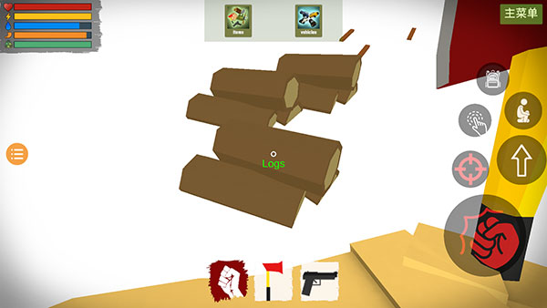 1、玩家可以利用地图中的木头、土、水,来建造一个生活基地。