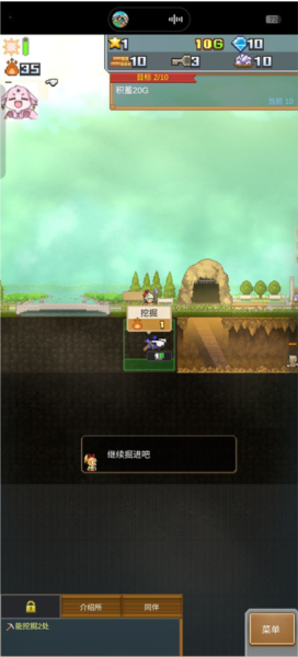 3、进入主界面后,首先可以点击挖掘”功能,开始拓展属于自己的地下洞窟。
