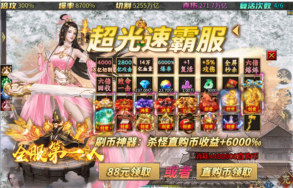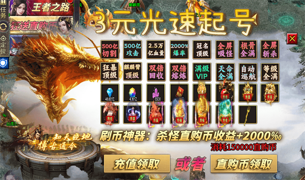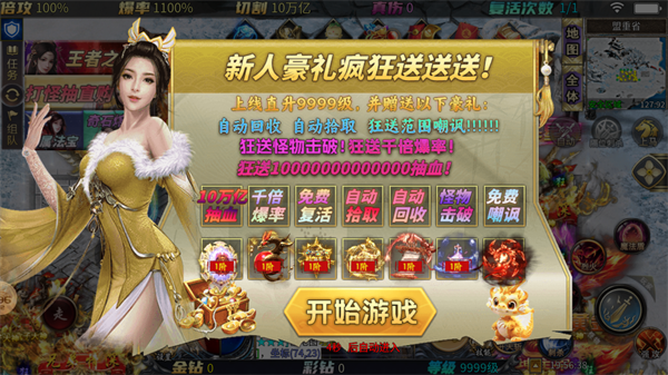 1、充值1:1,上线领万亿切割、范围嘲讽、直升9999级!