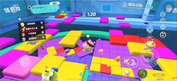 5、生存赛制包括小心脚下、偷心单身蛋、命悬一线、危机列车等9张地图,有的需要记住屏幕上显示颜色的方块,有的需要在复杂的地形防止跌落,玩法上乐趣十足。