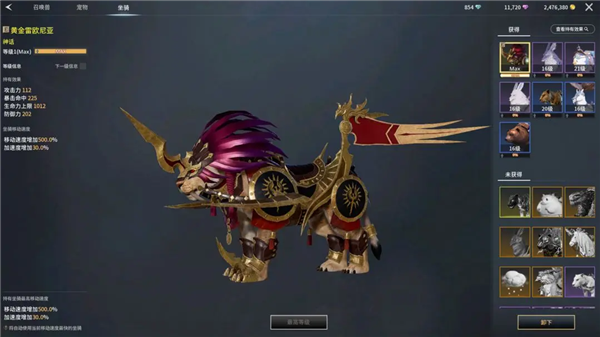 所有坐骑平均升级,以达到战斗力的最大化提升