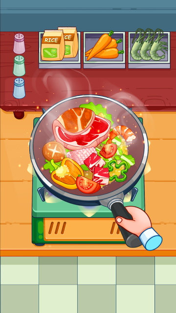3、正确完成每个订单后,您将赚钱以保持厨房蓬勃发展。你创造的饭菜越完美,你的成就感就越大。享受平静的烹饪节奏和创造令人垂涎欲滴的菜肴的满足感,这些菜肴不仅味道完美,而且看起来也很棒。