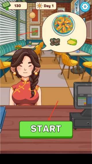 1、首先接受顾客订单,点击start”开始制作美食;