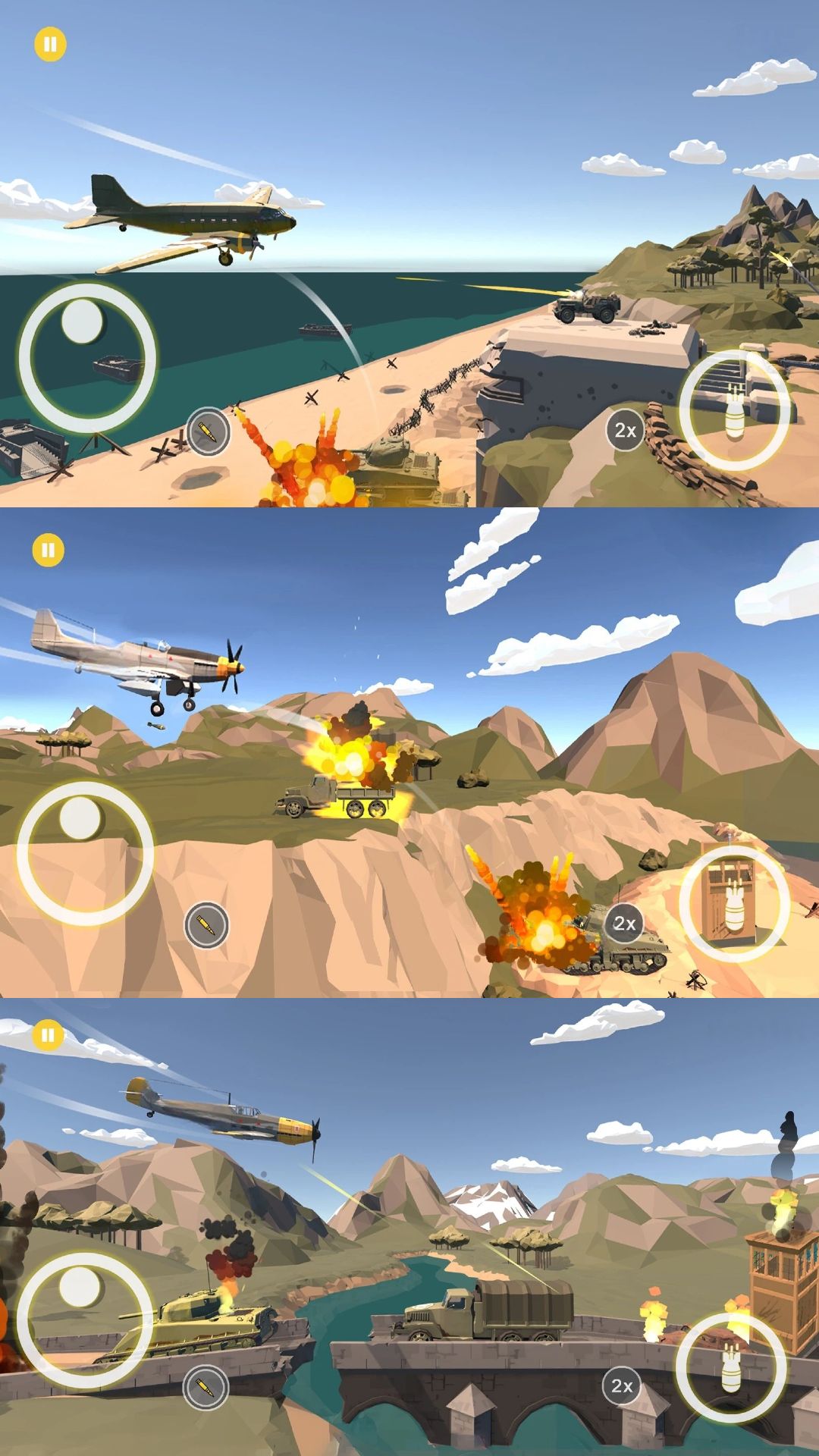 游戏设有多样化轰炸任务,玩家需综合判断风速、高度与目标移动轨迹,精准计算投弹时机,摧毁敌方工厂、桥梁、机场等战略设施,体验战术空袭的紧张与成就感。