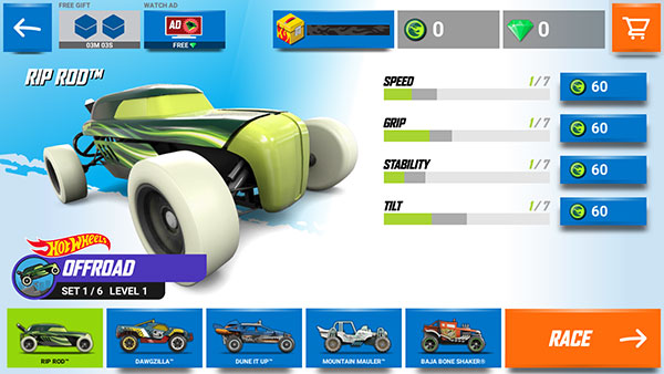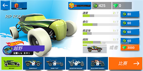 游戏收录了30款高度还原真实设计的经典Hot Wheels赛车,涵盖九十年代初至今的标志性车型。通过完成漂移过弯、精准控速、空中特技等技能挑战,你不仅能提升驾驶技巧,还能逐步解锁更多高性能赛车与重型卡车。每辆车均可通过比赛获得的硬币进行属性升级,当所有性能点满后,即可开启全新座驾,持续拓展你的车库阵容。