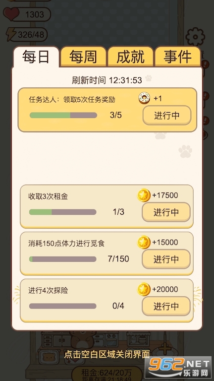 3、玩家可以与小仓鼠们一起探索后院,根据仓鼠租客的需求来布置房子,以吸引更多的租客,获取更多的租金。