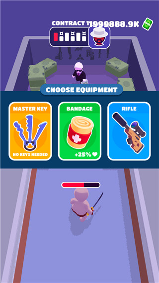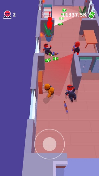 游戏采用直观触屏操作,强调走位、时机与环境利用。你需要灵活控制角色移动,巧妙避开黑衣守卫的视线,尤其注意强光区域——一旦被红光锁定,敌人将立即发起攻击。场景中会随机刷新各类道具,拾取后可存入背包按需使用。真正的隐形大师”不依赖暴力硬刚,而是凭借预测、欺骗与精准一击,在无声中终结威胁。