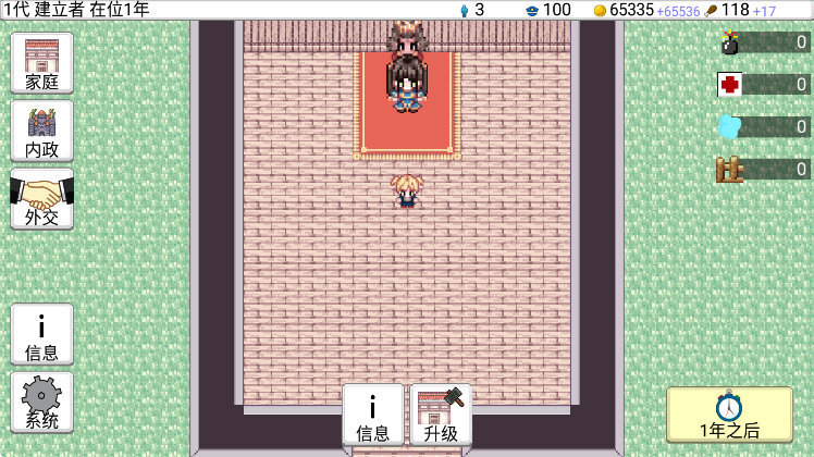 游戏不止于生娃”,更构建了一套完整的王国治理体系。你可以建造城堡、农田与矿山,升级科技树解锁炸弹等强力武器;通过外交手段与其他国家联姻、贸易,或直接宣战征服;在内政方面,合理分配资源、雇佣仆人提升生产效率;军事上则可布防、设陷阱,甚至收编敌国俘虏为己所用。三大系统深度交织,策略维度远超表面玩法。