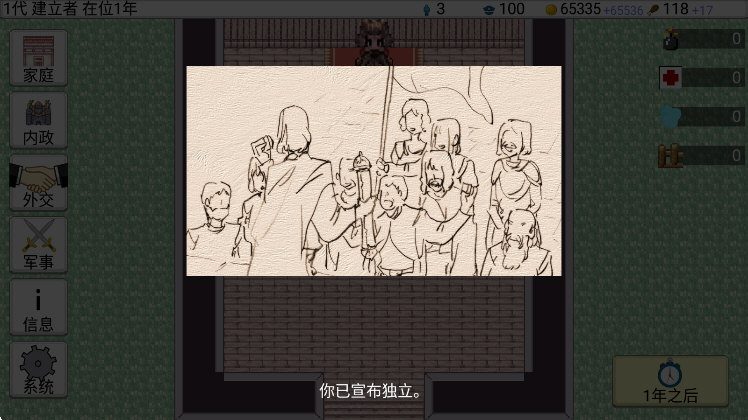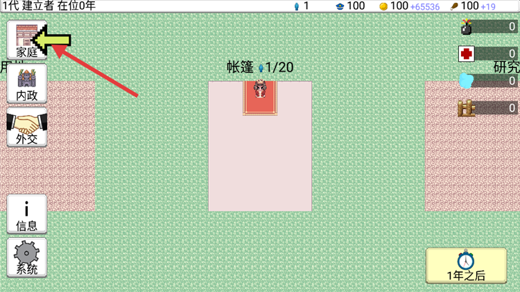2、点击左上角图标,创建你的初始家庭,开启复国之路。