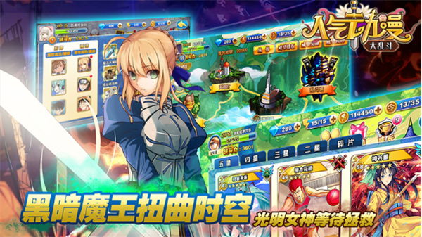 在遥远的次元里、光明女神在于黑暗魔王的战斗中落败了、由于女神的落败致使二次元世界时空混乱、众多二次元人物们纷纷变成卡牌齐聚一堂。而玩家作为被女神选召拯救二次元的英雄而被召唤到了这个世界中。受到使命召唤而来的玩家在解救二次元世界的中会有怎样的冒险呢?那就赶紧来体验吧!