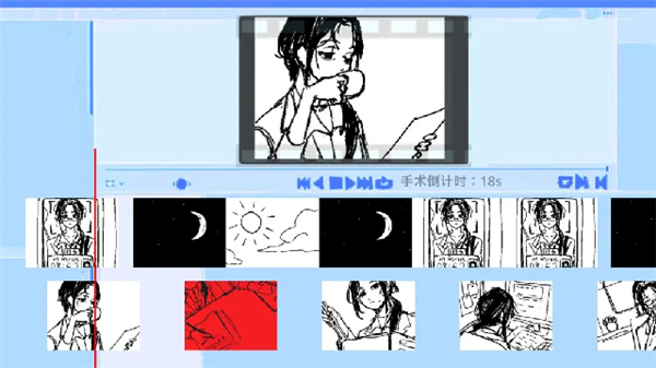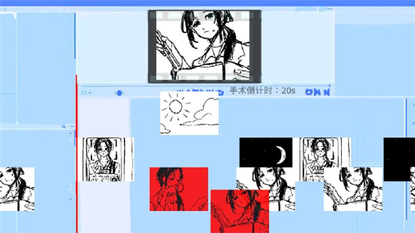 4.进入包含手术倒计时(20s)的时间线界面,界面中有代表不同时段(日、夜)和场景的像元素。