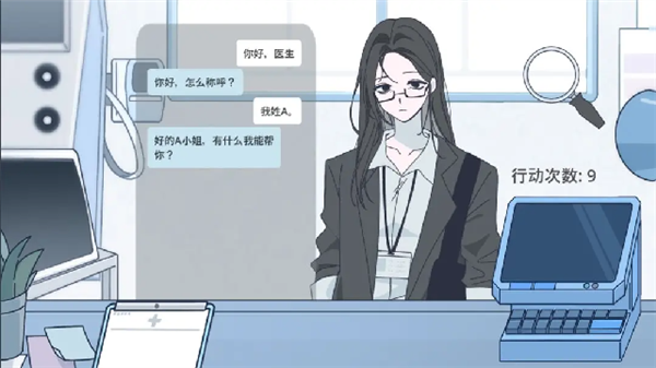 2.与医生进行对话,完成身份确认等初步交流,行动次数累计到9。