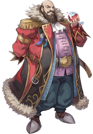 北非沿岸·阿尔塔戈出身的贸易商人。自从8年前漂流至此,他便强硬而精力充沛地带领着人们,将利摩日改造成了令人耳目一新的(欧罗巴风格的)街景虽然他是推动森林采伐和破坏遗迹、导致亚人与欧洲人关系紧张的罪魁祸首,但并非本性邪恶之人。