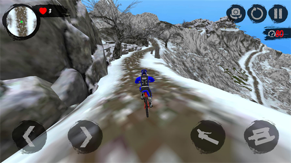 山地自行车速降是一款冒险骑行模拟游戏,作为极限运动题材的一款游戏,为玩家带来紧张刺激的游戏体验。在游戏中玩家将来到一个充满险峻地形的山地世界,游戏的每一张地图都是经过精心设计,融合了多种地形和气候变化,从雨雾天气到雪山高坡,每个元素都会对骑行产生影响,需要玩家小心的操控,面对危险小心应对。