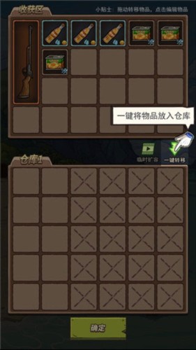 获得的物资可统一存入仓库,便于管理与调配。完成以上步骤后,真正的荒岛求生正式拉开序幕。