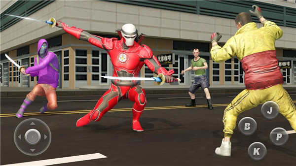 1. 玩家将与街头的犯罪分子展开激烈的战斗。通过点击攻击按钮,使用魔鬼忍者刀进行攻击。