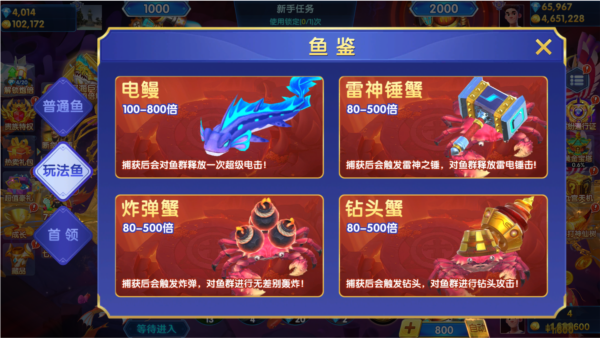 3、游戏画风全面升级,技能绚丽震撼,海洋中有更多惊喜等你发现,享尽指尖捕鱼乐趣。