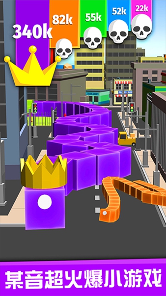 2、在这个简洁的城市场景之中,你可以不断的移动,找到更多的小蛇去吞噬。