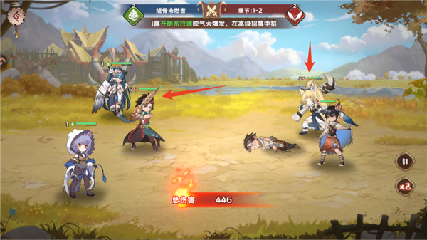 10、我们角色站在右边,绿色的是生命条,黄色是怒气条,生命条空角色推出,怒气条满释放大招!