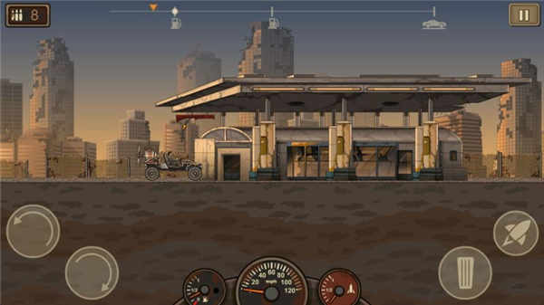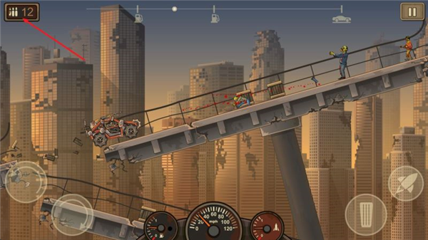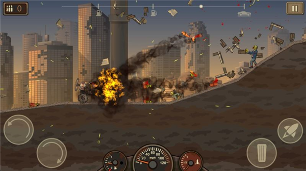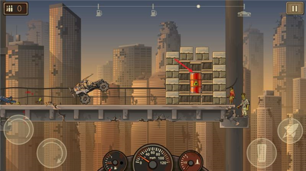 4、必须使用自己的推进器和刹车在地图上飞行,还要携带各种武器为车辆击杀前方的僵尸完成最后的过关冒险。