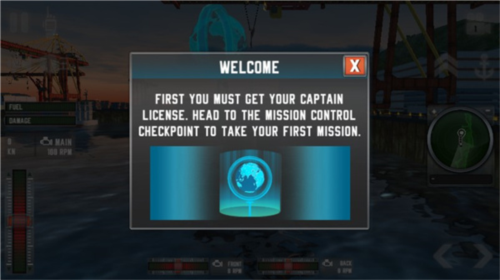4、要想在海上航行,你必须先获得船长执照,前往任务控制检查站执行你的第一个任务;