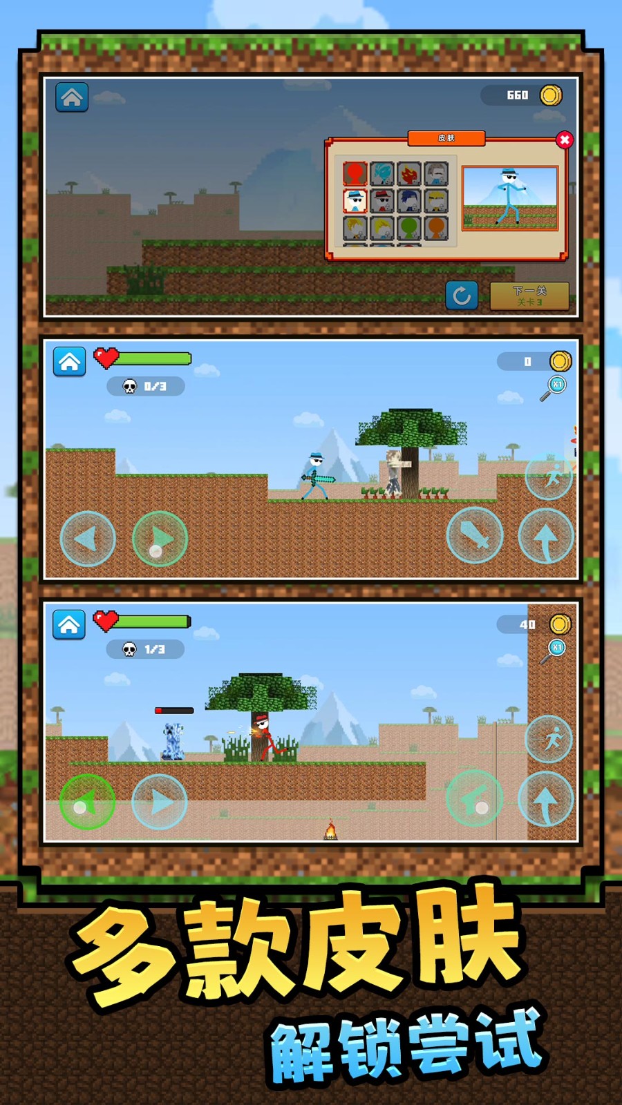 从邪恶的暗影火柴人军团,到被黑暗力量所控制的狂野野兽,你将面对形形色色的敌人。他们或狡猾、或凶猛,但都无法阻挡你前进的脚步。运用你的超凡武艺,征服这些敌人,让他们在你的铁拳下颤抖!