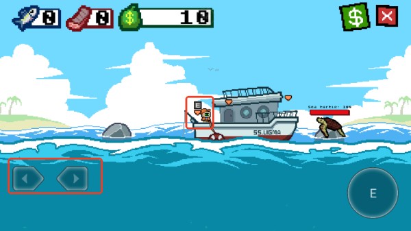2、前往最左边的钓鱼台,点击E开始钓鱼。钓鱼线会自动下降;使用左右方向键来控制它的方向。用鱼钩撞击一条鱼,对它造成伤害,伤害足够后将它钓上来。