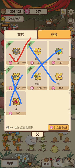2、由于商店限定鱼并不能带来更多收益,建议先优先购买建筑和藏品碎片,有加成效果。
