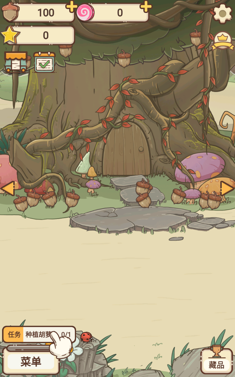 4、锅无法自动收集坚果树掉落的坚果,请手动收取(但右上角蓝石头加速后会自动拾取)。