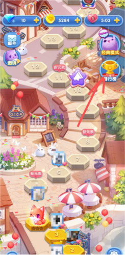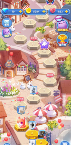 1、进入游戏的首页就可以看到如下的关卡地图,玩家需要从第一关也是最简单的一关开始玩起。点击关卡就能进入现有的关卡游戏界面,每次闯关都需要消耗右上角的爱心,只有通关才能将爱心赚回来,如果失败了就会扣除爱心。