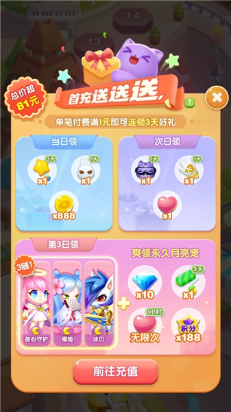 在游戏中从古典到现代,从西洋到华夏,精心剪裁的服饰每月一换。只要完成指定消除关卡,就能穿上限定款的漂亮时装哦!