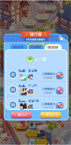 9、在游戏中玩家不仅可以自己闯关,还可以查看一起玩的好友的排名,和好友进行PK。点击右侧的排行榜就能够查看好友的闯关数。