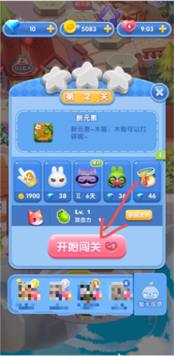 4、点击开始闯关就会消耗一定数量的爱心,进入游戏开始闯关了。