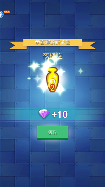 2、解锁新单位,领取奖励,如夜楼炮另外加10颗砖石。