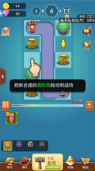 8、之后把合成的高阶炮拖动到战场。