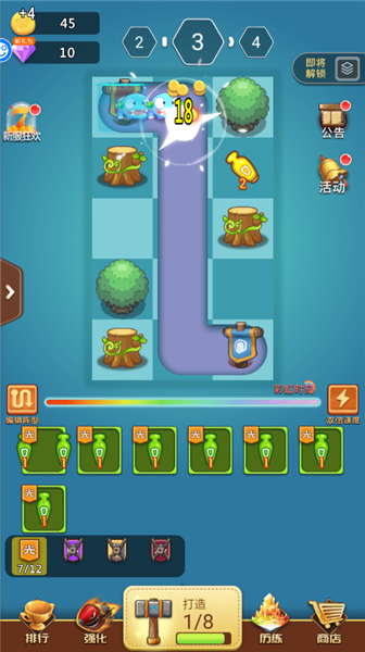 放置打造,初始20秒一个塔,满级19级后1秒一个塔,每天140个星级塔不成问题