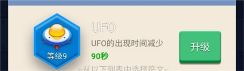 UFO,升级缩短出现等待时间,初始11分钟一次,满级30级,6分钟一次,每天没有上限,24小时在线就是240次,后期钻石的主要来源