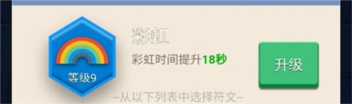 彩虹,升级增加彩虹持续时长,能打造更多的塔,25级满级。