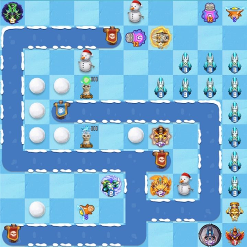 大量麻痹炮和光之圣洁放在出怪口打控制,两个出怪口各放一个减速炮增强控制效果,关底放一门圣光杀手收尾防止漏怪,中央位置是火龙+圣剑/弹射,作为长手AOE主炮清怪。