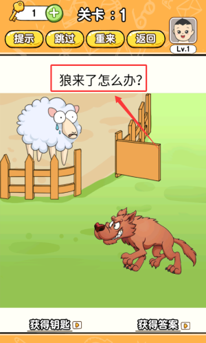 2、根据红框提示选择获得答案按钮,解决狼来了难题。