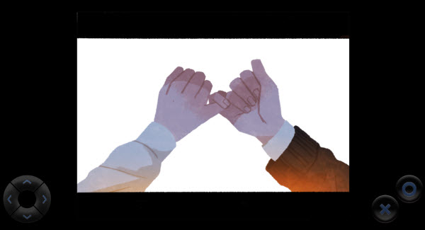 3、通过屏幕下方左右两侧的按钮控制角色对话与移动。