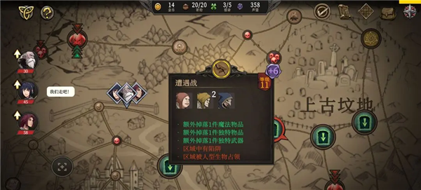 3、继承奖励和进阶系统:高殿战记游戏越久,奖励越多。多多使用英雄进行游戏,从而让他们在出发时获得更多的资源、物品、甚至拥有更改初始牌库的能力。