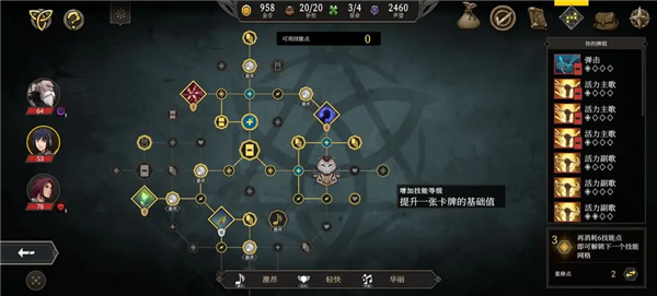 2、加点简单的说就是用最少的点尽可能的点出更强力的卡、解锁更多天赋插槽