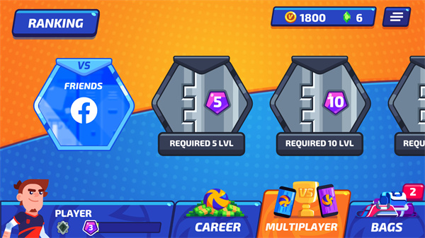 意为多人的,这个板块是属于联机模式的,可以在这个板块登录facebook账号,进行联机挑战;