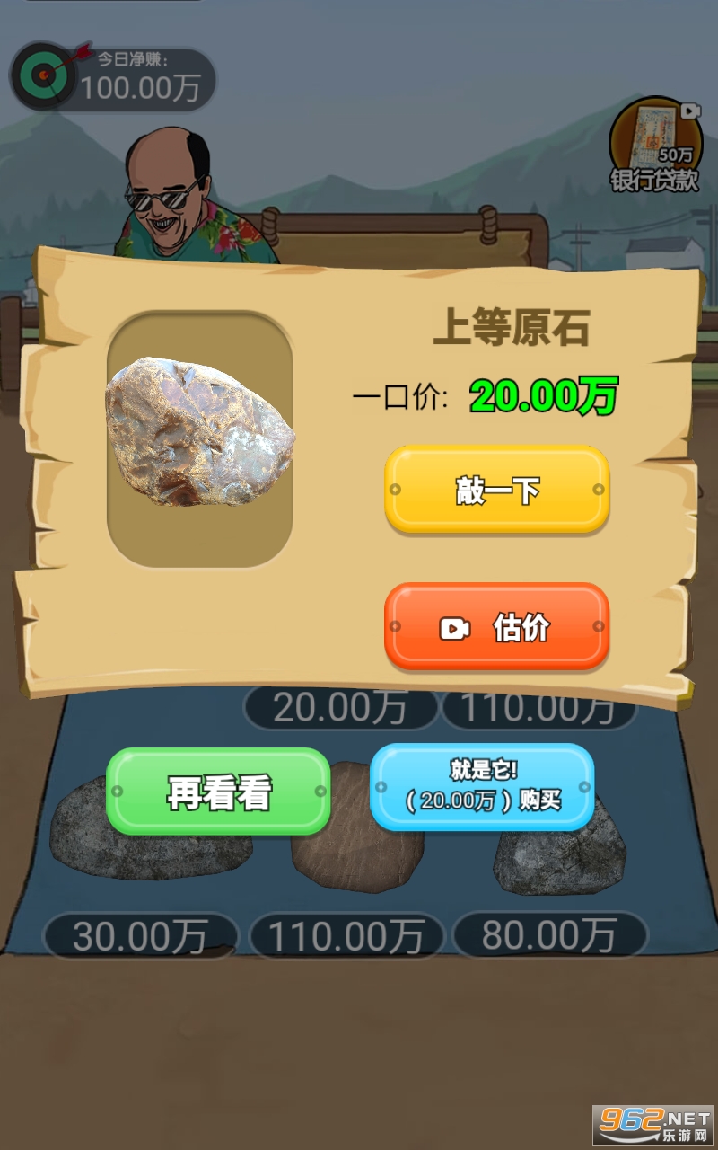 鉴宝高手是一款,休闲、益智、模拟经营类型游戏,游戏中购买藏有宝贝的石头,然后开启拍卖顾客喊价,你来一点一点切开石头漏出宝贝的真面目,有可能是赝品,也有可能是真品,可以选择合适的价格提前卖出。