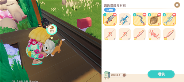 3、当猫咪饱食度低的话无法发起互动,需要喂食物。