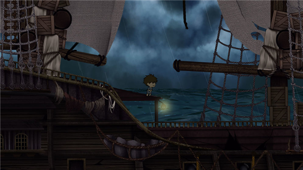 在玩家身后有一个大箱子,玩家需要将箱子推到如图所示位置,之后跳到箱子上面,在次进行跳跃,抓住中间的绳子,控制移动健左右晃动,跳到对面。