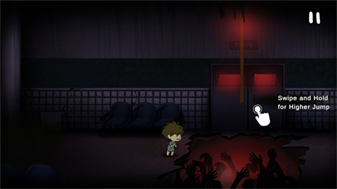 2、正式开始后左边控制角色移动,按住右边屏幕是互动,向上滑动是跳跃。